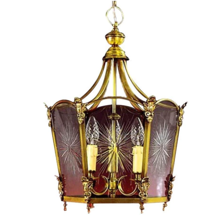 FINO COLGANTE FAROL ESTILO CLASICO EN BRONCE CON DETALLES